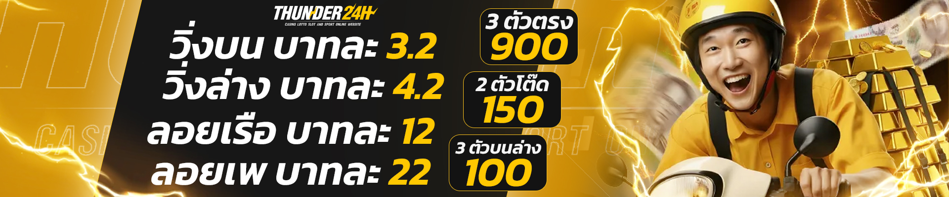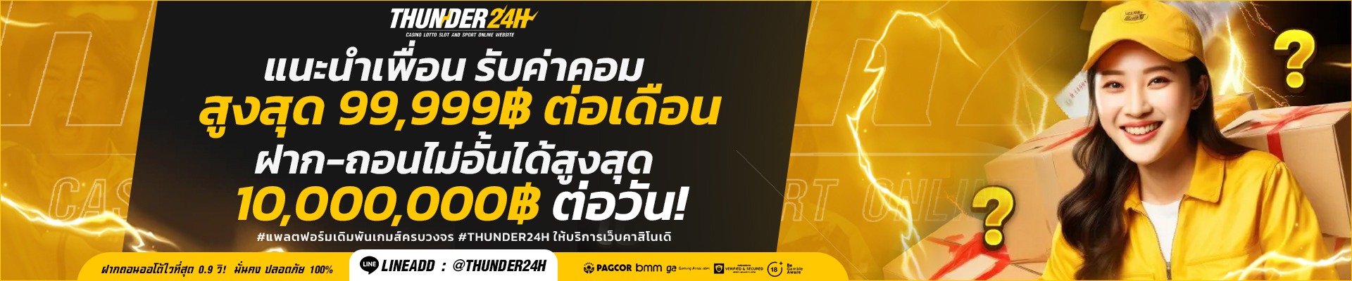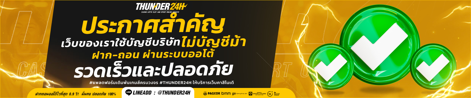 การสมัครสมาชิกกับ Thunder24h ใช้เวลาเพียงไม่กี่นาที แต่ความสนุกและความตื่นเต้นรอคุณอยู่มากมาย อย่าลืมเล่นอย่างมีความรับผิดชอบ และตั้งงบประมาณการเล่นให้เหมาะสม เพื่อให้การพนันเป็นเพียงความบันเทิง ไม่ใช่ภาระทางการเงิน